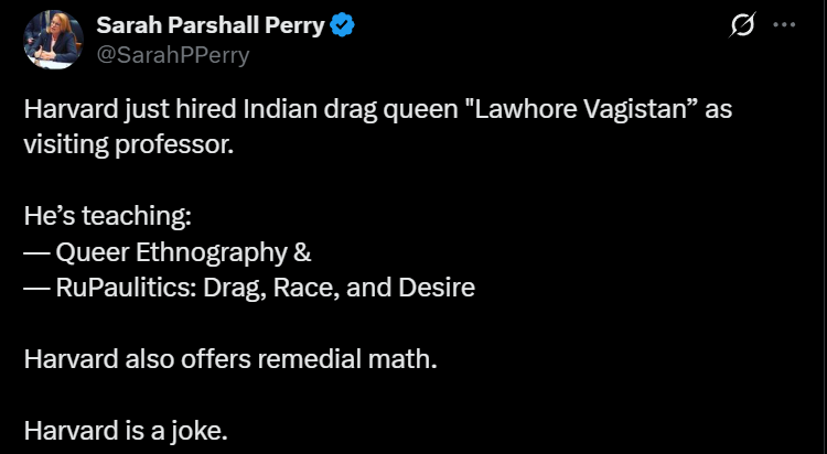 Harvard Hires Drag Queen Named ‘LaWhore Vagistan’ as Visiting Gender Studies ProfessorRick Moran | 9:34 AM on October 03, 2025