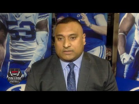 BYU coach Kalani Sitake reacts to the Cougars being 14th in College Football Playoff Top 25